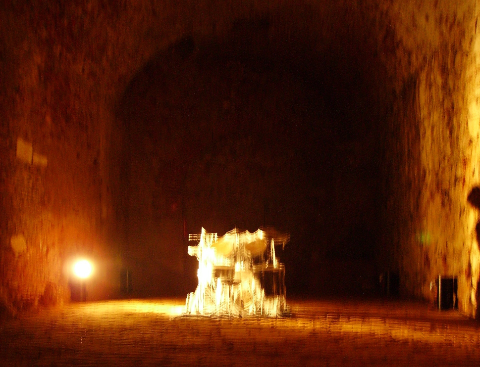 "(i)d" A drumset loses its destiny, when not played since considerable time. It stands "in dependence" to somebody who uses it. "(i)d" is an installative work by composer Christian F. Schiller in cooperation with drummer DD Kern, commissioned by the first elevate Festival 2005 with its Motto "Independence". Motion sensors triggered by the audience control a prerecorded drum-solo, while walking near and around a drum-set covered with cobwebs.